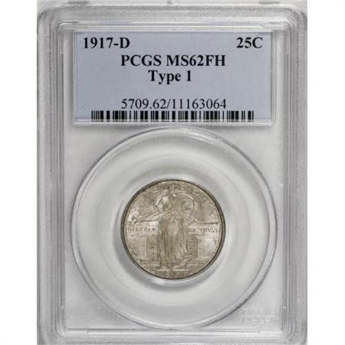 <B>1917-D 25C Type One MS62 Full Head PCGS.</B></I> PCGS Population (90/918). NGC Census: (92/663). Mintage: 1,509,200. Numismedia Wsl. Price for NGC/PCGS coin in MS62: $325. (#5709)<BR><BR><B>Coin Engraver:</B> Hermon A. MacNeil<BR><BR><b>Shipping:</b> Coins & Currency (<a target="_blank" href="http://www.heritageauctions.com/common/shipping.php">view shipping information</a>)
