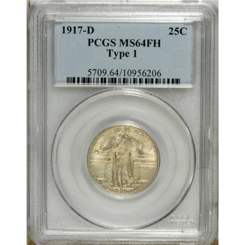 1917-D 25C Type One MS64 Full Head PCGS. A boldly stru