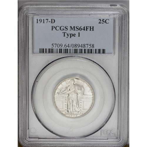 1917-D 25C Type One MS64 Full Head PCGS. Sharply struc 1917-D[25C] Type One MS64 Full Head PCGS.
