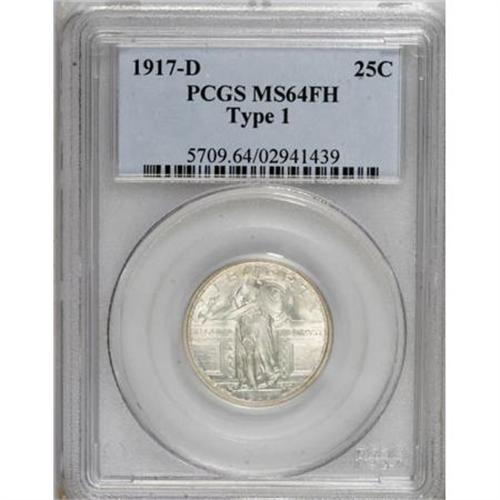 <B>1917-D 25C Type One MS64 Full Head PCGS.</B></I> Attentively struck with hints of silver-gray and sky-blue patina that enhance the strongly lustrous surfaces. Minimally marked for the grade and a lovely example of this challenging two-year type.<BR><BR><B>Coin Engraver:</B> Hermon A. MacNeil<BR><BR><b>Shipping:</b> Coins & Currency (<a target="_blank" href="http://www.heritageauctions.com/common/shipping.php">view shipping information</a>)