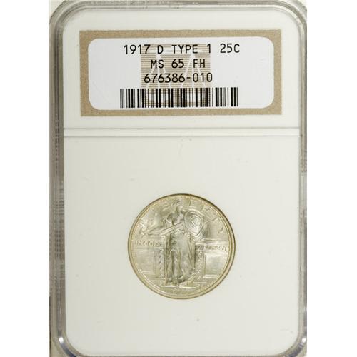 <B>1917-D 25C Type One MS65 Full Head NGC.</B></I> Highly lustrous with a touch of tan at the rims. This exactingly impressed Gem's detail would be appreciated by almost any numismatist.<BR><BR><b>Shipping:</b> Coin/Currency (<a target="_blank" href="http://www.heritageauctions.com/common/shipping.php">view shipping information</a>)
