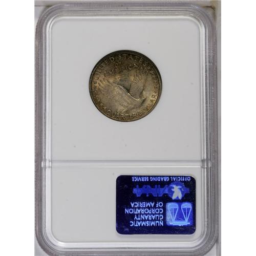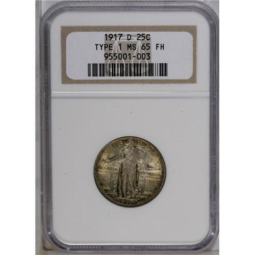 <B>1917-D<25C> Type One MS65 Full Head NGC.</B></I> This Gem has strong luster that shines through moderately thick rose and gold-orange patina. The devices are boldly defined overall with only slight softness on a few of the shield's rivets. An appealing piece that has just a few small marks on its surfaces. An important type coin as it represents the single issue from the Denver Mint of the Type One design.<BR><I>From The Clifton Rodenburg Collection.</B></I>
