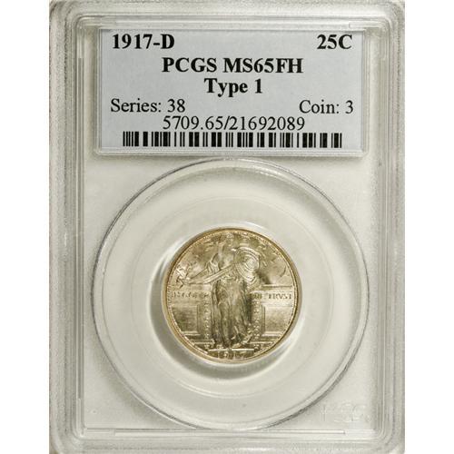 <B>1917-D 25C Type One MS65 Full Head PCGS.</B></I> Highly lustrous with a faint touch of rose on the obverse. This immensely appealing example is sharply struck and has hardly any marks to report.<BR><BR><b>Shipping:</b> Coins & Currency (<a target="_blank" href="http://www.heritageauctions.com/common/shipping.php">view shipping information</a>)