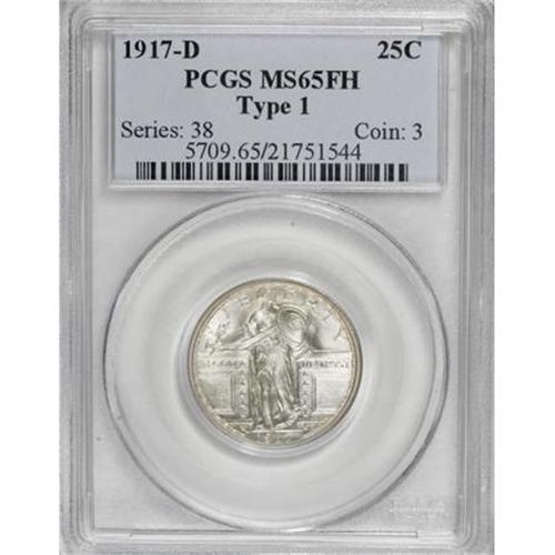 <B>1917-D 25C Type One MS65 Full Head PCGS.</B></I> A shining and solidly struck Gem representative of this popular Type One issue, minimally toned with great eye appeal. Denver struck just over 1.5 million quarters before the change to the less revealing Type Two design.<BR><BR><B>Coin Engraver:</B> Hermon A. MacNeil<BR><BR><b>Shipping:</b> Coins & Currency (<a target="_blank" href="http://www.heritageauctions.com/common/shipping.php">view shipping information</a>)