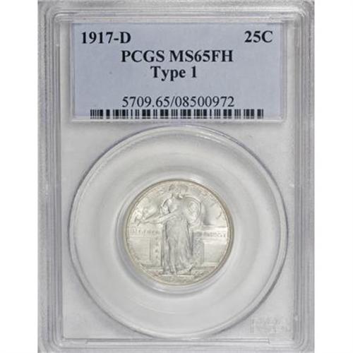 <B>1917-D 25C Type One MS65 Full Head PCGS.</B></I> This is an exquisitely struck specimen, with excellent definition transcending the Full Head to include the vertical and horizontal stripes of the inner shield, the rivets and stars, Liberty's toes, and the eagle's wing and torso feathers. Radiantly lustrous surfaces display just a wisp of faint gold color at the margins, and are devoid of significant marks.<BR><BR><B>Coin Engraver:</B> Hermon A. MacNeil<BR><BR><b>Shipping:</b> Coins & Currency (<a target="_blank" href="http://www.heritageauctions.com/common/shipping.php">view shipping information</a>)