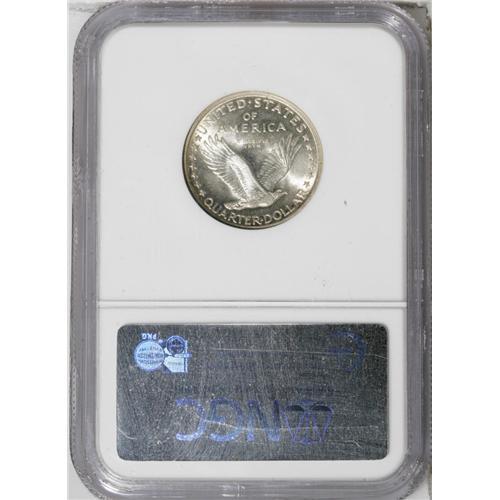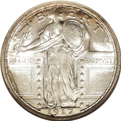 <B>1917-D<25C> Type One MS66 Full Head NGC.</B></I> A lovely Premium Gem example of this, one of the underrated Type One mintmarked Standing Liberty quarters. This piece offers subtly glowing silver-gold surfaces with a bold strike. The level of detail surpasses the full head to embrace the full shield rivets. This coin is extremely appealing, with no mentionable distractions of any sort. NGC has graded 14 specimens finer (7/06).<BR><I>From The Brevard Gold & Silver Former #2 NGC Registry of Standing Liberty Quarters.</B></I>