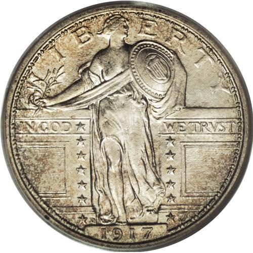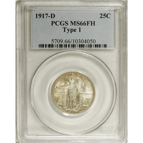<B>1917-D 25C Type One MS66 Full Head PCGS.</B></I> Once the early troubles were worked out with the modest number of pieces struck in 1916, the Type One design yielded consistently excellent strikes. Such is also the case for this vibrant Premium Gem, boldly impressed overall with specks of golden-orange patina over shimmering surfaces. Eminently appealing.<BR><BR><b>Shipping:</b> Coins & Currency (<a target="_blank" href="http://www.heritageauctions.com/common/shipping.php">view shipping information</a>)