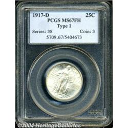 <B>1917-D<25C> Type One MS67 Full Head PCGS.</B></I> Intricately detailed on each side and untoned, the surfaces are mostly brilliant and shimmer with bright mint luster. An exceptionally preserved D-mint Type One and free from any troubling abrasions. <BR><BR><B>Important notice:</B> Heritage usually auctions material at the rate of 200-250 lots per hour. On some occasions eBay Live bid software or the Internet may not be able to keep up with the pace of the auction. We recommend placing a realistic absentee bid now as insurance to avoid disappointment. Occasionally the auctioneer may eliminate or reject an eBay Live bid, and the auctioneer may also reopen a lot after the close of the eBay live bidding (usually because we missed an audience bid), and may reject your bid even if it shows you as the winning bidder. By bidding via eBay Live, you agree that Heritage may award the lot to another bidder at its sole discretion under the circumstances described above or any other reasonable circumstances. Since eBay bids are not shown to us until we open the lot on the floor, we treat those bids just like floor bids. In most cases the floor responds before the eBay bid is presented to us, due to Internet lag time, so for consistency we have made it a policy that floor bids are always considered first over tie eBay live bids. Also please note that all Heritage lots purchased through eBay Live carry a 20% Buyer's Premium. Please make sure you read the Terms and Conditions before you bid. </span></font></tr></table></td></tr></table>