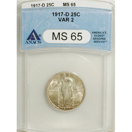 1917-D 25C Type Two MS65 ANACS. A well struck and slig