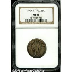 <B>1917-D 25C Type Two MS65 NGC.</B></I> Faint mauve and gold patina consume lustrous surfaces that are well preserved. The design elements are well struck throughout. A handsome looking coin. Population: 29 in 65, 16 finer (2/05).