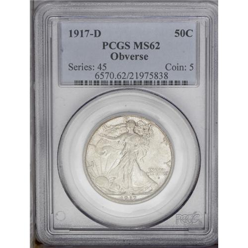 1917-D 50C Obverse MS62 PCGS. Light gray surfaces disp 1917-D[50C] Obverse MS62 PCGS.