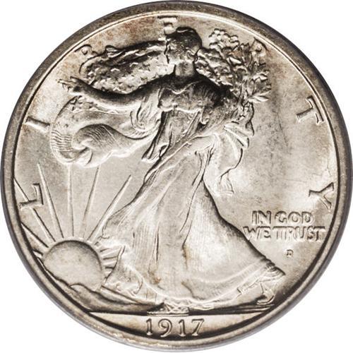 <B>1917-D<50C> Obverse MS64 PCGS.</B></I> Light apricot-gold patina graces each side of this otherwise brilliant and lustrous coin, an example of the last year of the Obverse Mintmark subtype. The strike through the centers is typical for the issue, with a bit of softness that leaves a partial thumb showing and less than full detail on Liberty's head. Nonetheless a pleasing, accurately graded near-Gem example of this low mintage issue.