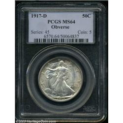 <table><tr><td><TABLE cellSpacing=0 cellPadding=0 width="100%" bgColor=#000000 border=0><TBODY> <TR><TD width="100%"><TABLE cellSpacing=1 cellPadding=3 width="100%" border=0><TBODY><TR><TD width="100%" bgColor=#79735c><FONT face=arial color=#ffffff size=3><B>Description</B> </FONT></TD></TR><TR><TD width="100%" bgColor=#ffffff><FONT face=arial size=2><B>1917-D 50C Obverse MS64 PCGS.</B></I> Only a quarter million Obverse Mintmark coins were produced out of the total of 765,400 pieces that were struck of the two mintmark types from this year. This is a sharply defined example that has vibrant mint luster and just a bit of light golden toning on each side. </FONT></TD></TR></TBODY></TABLE></TD></TR></TBODY></TABLE><BR><A name=PricesRealized></A><TABLE cellSpacing=0 cellPadding=0 width="100%" bgColor=#000000 border=0><TBODY><TR><TD width="100%"><TABLE cellSpacing=1 cellPadding=3 width="100%" border=0><TBODY><TR><TD width="100%" bgColor=#79735c><A name=PR><FONT face=arial color=#ffffff size=3><B>Previous Prices from Heritage Auctions</B> </FONT></A></TD></TR><TR><TD bgColor=#f6f6ed><TABLE cellSpacing=0 cellPadding=0 width="100%" border=1><TBODY><TR><TD align=middle width="33%"><B>Date</B></TD><TD align=middle width="33%"><B>Service</B></TD><TD align=middle width="33%"><B>Price</B></TD></TR><TR bgColor=whitesmoke><TD width="33%"><B>09/16/2003</B></TD><TD width="33%">PCGS</TD><TD width="33%">$1,840.00</TD></TR><TR bgColor=whitesmoke><TD width="33%"><B>07/09/2002</B></TD><TD width="33%">PCGS</TD><TD width="33%">$1,782.50</TD></TR><TR bgColor=whitesmoke><TD width="33%"><B>01/04/2000</B></TD><TD width="33%">NGC</TD><TD width="33%">$1,151.00</TD></TR><TR bgColor=whitesmoke><TD width="33%"><B>05/31/2003</B></TD><TD width="33%">NGC</TD><TD width="33%">$3,680.00</TD></TR><TR bgColor=whitesmoke><TD width="33%"><B>05/03/2003</B></TD><TD width="33%">PCGS</TD><TD width="33%">$2,185.00</TD></TR><TR bgColor=whitesmoke><TD width="33%"><B>06/08/2002</B></TD><TD width="33%">PCGS</TD><TD width="33%">$1,667.50</TD></TR><TR bgColor=whitesmoke><TD width="33%"><B>01/12/2002</B></TD><TD width="33%">ANACS</TD><TD width="33%">$1,840.00</TD></TR><TR bgColor=whitesmoke><TD width="33%"><B>11/15/2001</B></TD><TD width="33%">PCGS</TD><TD width="33%">$1,782.50</TD></TR><TR bgColor=whitesmoke><TD width="33%"><B>08/08/2001</B></TD><TD width="33%">PCGS</TD><TD width="33%">$2,070.00</TD></TR><TR bgColor=whitesmoke><TD width="33%"><B>01/07/2000</B></TD><TD width="33%">PCGS</TD><TD width="33%">$1,610.00</TD></TR><TR bgColor=whitesmoke><TD width="33%"><B>08/17/1996</B></TD><TD width="33%">NGC</TD><TD width="33%">$1,705.00</TD></TR><TR bgColor=whitesmoke><TD width="33%"><B>01/06/1993</B></TD><TD width="33%">PCGS</TD><TD width="33%">$1,402.50</TD></TR><TR bgColor=whitesmoke><TD width="33%"><B>09/01/1998</B></TD><TD width="33%">PCGS</TD><TD width="33%">$1,708.00</TD></TR><TR bgColor=whitesmoke><TD width="33%"><B>08/01/1995</B></TD><TD width="33%">PCGS</TD><TD width="33%">$1,540.00</TD></TR><TR bgColor=whitesmoke><TD width="33%"><B>01/01/1999</B></TD><TD width="33%">PCGS</TD><TD width="33%">$2,070.00</TD></TR></TBODY></TABLE></TD></TR><TR><TD bgColor=#ffffff><FONT face=arial size=1 ?>PLEASE NOTE: All prices realized reflect the final hammer price PLUS the buyer's premium in auctions that charge a buyer's premium. Each item has a notation at the top of the listing indicating whether that lot included a buyer's premium. Example: A item that sells with a final hammer price of $100 and a 20% buyer's premium will display with a price realized of $120. All information listed is intended to be as accurate as possible, but errors are possible. Please use this guide carefully and inform us of any inaccuracies. </FONT></TD></TR></TBODY></TABLE></TD></TR></TBODY></TABLE><BR><TABLE cellSpacing=0 cellPadding=0 width="100%" bgColor=#000000 border=0><TBODY><TR><TD width="100%"><TABLE cellSpacing=1 cellPadding=3 width="100%" border=0><TBODY><TR><TD width="100%" bgColor=#79735c colSpan=6><FONT face=arial color=#ffffff size=3><B>Price Guide*</B> </FONT></TD></TR><TR bgColor=#f6f6ed><TD align=middle><B>Grade</B> </TD><TD align=middle><B>Coin World<BR>(Trends)</B> </TD><TD align=middle><B>Numismedia<BR>Retail</B> </TD><TD align=middle><B>Numismedia<BR>Wholesale</B> </TD><TD align=middle><B>Coin<BR>Universe</B> </TD><TD align=middle><B>Heritage<BR>Value Index</B> </TD></TR><TR bgColor=#ffffff><TD align=middle>63</TD><TD align=right>$1,000.00</TD><TD align=right>---</TD><TD align=right>$825.00</TD><TD align=right>$975.00</TD><TD align=right>$713.36</TD></TR><TR style="FONT-WEIGHT: bold" bgColor=#cccfdd><TD align=middle>64</TD><TD align=right>$2,500.00</TD><TD align=right>---</TD><TD align=right>$1,640.00</TD><TD align=right>$2,300.00</TD><TD align=right>$1,777.81</TD></TR><TR bgColor=#ffffff><TD align=middle>65</TD><TD align=right>$6,000.00</TD><TD align=right>---</TD><TD align=right>$4,975.00</TD><TD align=right>$7,750.00</TD><TD align=right>$5,026.25</TD></TR><TR bgColor=#ffffff><TD colSpan=6><FONT size=1>*All information listed is intended to be as accurate as possible, but errors are possible. No item may be returned or refused based on this information which is provided as a service to our customers. You should contact each pricing source directly to determine the accuracy of this information. </FONT></TD></TR></TBODY></TABLE></TD></TR></TBODY></TABLE><BR><TABLE cellSpacing=0 cellPadding=0 width="100%" bgColor=#000000 border=0><TBODY><TR><TD width="100%"><TABLE cellSpacing=1 cellPadding=3 width="100%" border=0><TBODY><TR><TD width="100%" bgColor=#79735c><FONT face=arial color=#ffffff size=3><B>Population Guide</B> </FONT></TD></TR><TR bgColor=#ffffff><TD align=middle><!-- Begin Output of Population Grid--><TABLE cellSpacing=0 cellPadding=0 width="100%" border=0><TBODY><TR><TD vAlign=center><TABLE cellSpacing=0 width="100%" border=1 cellsadding="3"><TBODY><TR><TD vAlign=center><TABLE cellSpacing=0 cellPadding=3 width="100%" border=1><TBODY><TR><TD vAl