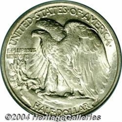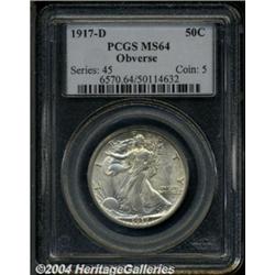 <B>1917-D<50C> Obverse MS64 PCGS.</B></I> Although not as rare as the 1917-S Obverse variety, the 1917-D does possess a moderately lower mintage, which ranks among the lowest issues in the series since only 765,400 pieces were struck. Lightly toned in apricot and cream-gray colors, this shimmering near-Gem features a crisp strike and a well preserved reverse. The obverse field is also clean, and only a couple of tiny ticks near Liberty's waist denies a finer assessment. <BR><BR><B>Important notice:</B> Heritage usually auctions material at the rate of 200-250 lots per hour. On some occasions eBay Live bid software or the Internet may not be able to keep up with the pace of the auction. We recommend placing a realistic absentee bid now as insurance to avoid disappointment. Occasionally the auctioneer may eliminate or reject an eBay Live bid, and the auctioneer may also reopen a lot after the close of the eBay live bidding (usually because we missed an audience bid), and may reject your bid even if it shows you as the winning bidder. By bidding via eBay Live, you agree that Heritage may award the lot to another bidder at its sole discretion under the circumstances described above or any other reasonable circumstances. Since eBay bids are not shown to us until we open the lot on the floor, we treat those bids just like floor bids. In most cases the floor responds before the eBay bid is presented to us, due to Internet lag time, so for consistency we have made it a policy that floor bids are always considered first over tie eBay live bids. Also please note that all Heritage lots purchased through eBay Live carry a 20% Buyer's Premium. Please make sure you read the Terms and Conditions before you bid. </span></font></tr></table></td></tr></table>