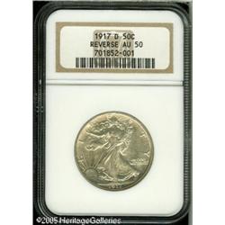 <B>1917-D 50C Reverse AU50 NGC.</B></I> A better date, this half dollar is white and lightly circulated with high end eye appeal for the grade. Free from distracting contact marks.<BR><I>From The Gene Holland Collection of United States Coins, Part Three.</B></I> Lot:7932
