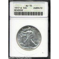 <B>1917-D 50C Reverse AU55 ANACS.</B></I> A briefly circulated example with untoned, matte-like surfaces that retain a generous portion of luster.<BR><I>From The Gene Holland Collection of United States Coins, Part Three.</B></I> Lot:7933