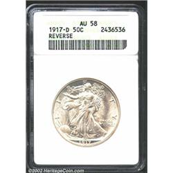 1917-D 50C Reverse AU58 ANACS. Lustrous for the grade, with bright tan-gold patina on the highpoints
