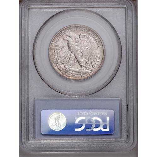 <B>1917-D 50C Reverse MS63 PCGS.</B></I> Light rose-gray iridescence overlays the matte-like surfaces of this semi-key Denver issue. The strike is typically soft at the central regions.