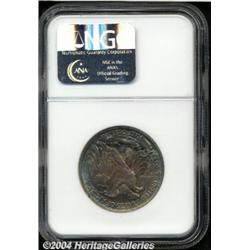 <B>1917-D<50C> Reverse MS64 NGC.</B></I> Colorful patination blankets each side deep crimson-red colors changing to magenta, then to electric-blue at the borders. Minimally marked for the grade and worth a close look for the toned Half Dollar enthusiast. <BR><BR><B>Important notice:</B> Heritage usually auctions material at the rate of 200-250 lots per hour. On some occasions eBay Live bid software or the Internet may not be able to keep up with the pace of the auction. We recommend placing a realistic absentee bid now as insurance to avoid disappointment. Occasionally the auctioneer may eliminate or reject an eBay Live bid, and the auctioneer may also reopen a lot after the close of the eBay live bidding (usually because we missed an audience bid), and may reject your bid even if it shows you as the winning bidder. By bidding via eBay Live, you agree that Heritage may award the lot to another bidder at its sole discretion under the circumstances described above or any other reasonable circumstances. Since eBay bids are not shown to us until we open the lot on the floor, we treat those bids just like floor bids. In most cases the floor responds before the eBay bid is presented to us, due to Internet lag time, so for consistency we have made it a policy that floor bids are always considered first over tie eBay live bids. Also please note that all Heritage lots purchased through eBay Live carry a 20% Buyer's Premium. Please make sure you read the Terms and Conditions before you bid.