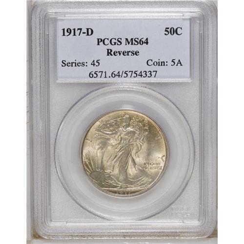 <B>1917-D 50C Reverse MS64 PCGS.</B></I> Light apricot and dove-gray toning endows this thoroughly lustrous and splendidly preserved near-Gem. The strike is attentive, and the eye appeal is undeniable. The 1917-D with reverse mintmark had a relatively plentiful mintage of 1.94 million pieces, but is actually scarcer in Mint State than the much lower mintage obverse mintmark 1917-D.<BR><BR><b>Shipping:</b> Coin/Currency (<a target="_blank" href="http://www.heritageauctions.com/common/shipping.php">view shipping information</a>)