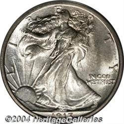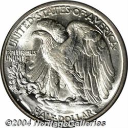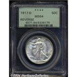 <B>1917-D<50C> Reverse MS64 PCGS.</B></I> This piece is especially sharply defined with sharp details on Liberty's hand and head as well as the eagle's leg. This lustrous example shows a mostly brilliant appearance with just a hint of natural patina. A couple of small marks are seen in the right obverse field that limit the grade. Population: 99 in 64, 30 finer (7/04).<BR><I>From The Dr. Frank Lanza Collection of Walking Liberty Half Dollars.</B></I> <BR><BR><B>Important notice:</B> Heritage usually auctions material at the rate of 200-250 lots per hour. On some occasions eBay Live bid software or the Internet may not be able to keep up with the pace of the auction. We recommend placing a realistic absentee bid now as insurance to avoid disappointment. Occasionally the auctioneer may eliminate or reject an eBay Live bid, and the auctioneer may also reopen a lot after the close of the eBay live bidding (usually because we missed an audience bid), and may reject your bid even if it shows you as the winning bidder. By bidding via eBay Live, you agree that Heritage may award the lot to another bidder at its sole discretion under the circumstances described above or any other reasonable circumstances. Since eBay bids are not shown to us until we open the lot on the floor, we treat those bids just like floor bids. In most cases the floor responds before the eBay bid is presented to us, due to Internet lag time, so for consistency we have made it a policy that floor bids are always considered first over tie eBay live bids. Also please note that all Heritage lots purchased through eBay Live carry a 20% Buyer's Premium. Please make sure you read the Terms and Conditions before you bid. </span></font></tr></table></td></tr></table>