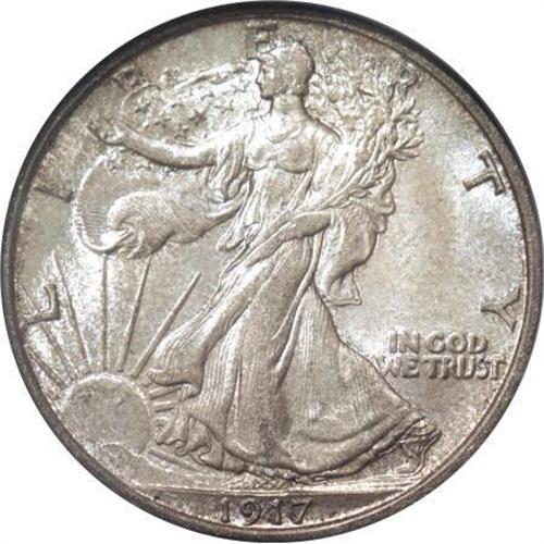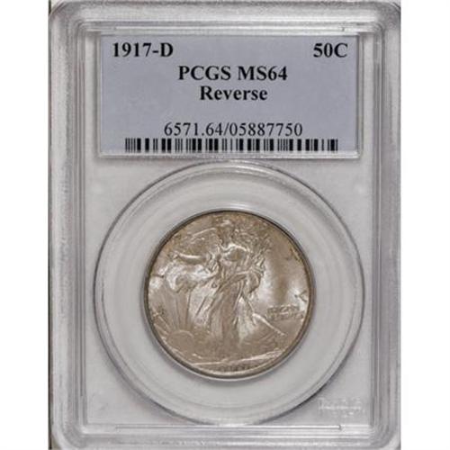 <B>1917-D 50C Reverse MS64 PCGS.</B></I> The considerable luster present emanates through a moderate layer of speckled golden-gray toning on both sides. The central strike is a trifle weak, as usually seen, although the coin possesses much appeal and is seldom seen in Gem condition. PCGS has only certified 37 coins finer (12/07).<BR><BR><B>Coin Engraver:</B> Adolph A. Weinman<BR><BR><b>Shipping:</b> Coins & Currency (<a target="_blank" href="http://www.heritageauctions.com/common/shipping.php">view shipping information</a>)