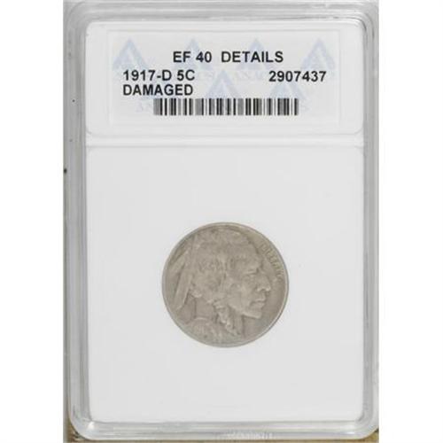 <B>1917-D 5C --Damaged--ANACS. EF40 Details.</B></I> NGC Census: (9/543). PCGS Population (10/851). Mintage: 9,910,000. Numismedia Wsl. Price for NGC/PCGS coin in XF40: $108. (#3935)<BR><BR><B>Coin Engraver:</B> James E. Fraser<BR><BR><b>Shipping:</b> Coins & Currency (<a target="_blank" href="http://www.heritageauctions.com/common/shipping.php">view shipping information</a>)