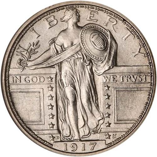 <b>1917-D Liberty Standing Quarter Dollar. Type 1. NGC graded MS65 FH.</b> A gorgeous gem of the finest order for a Type 1 standing Liberty in purest snow white. The highly lustrous surfaces exhibit wonderful satiny luster and nice originality without toning; also boldly struck, all design features are sharp enough to merit attention here. As we have mentioned elsewhere, United States silver coins struck in 1916 and early 1917 possess a "textured" luster, almost velvety, unlike anything before or since. The velvety effect is most notable on sharp Mint State specimens of the new designs: Mercury dime, the standing Liberty quarter, and the walking Liberty half dollar <b>(PCGS # 5709)</b> <i>