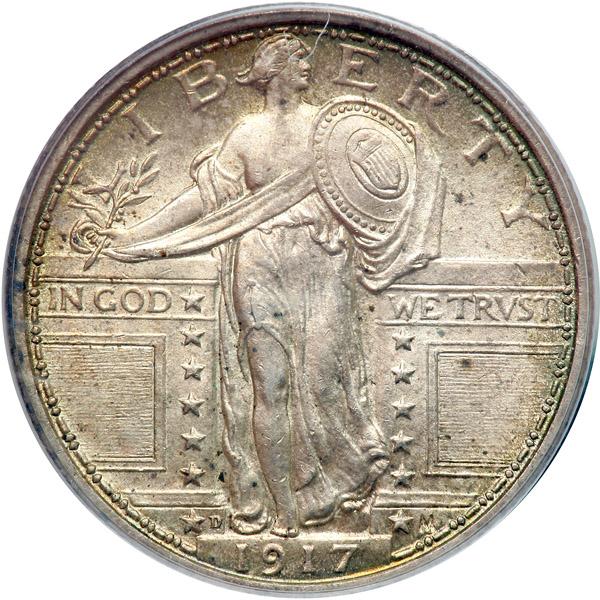 1917-D. Type 1. PCGS graded MS-63 Full Head. Well struck with lovely light golden toning (PCGS # 5709) .