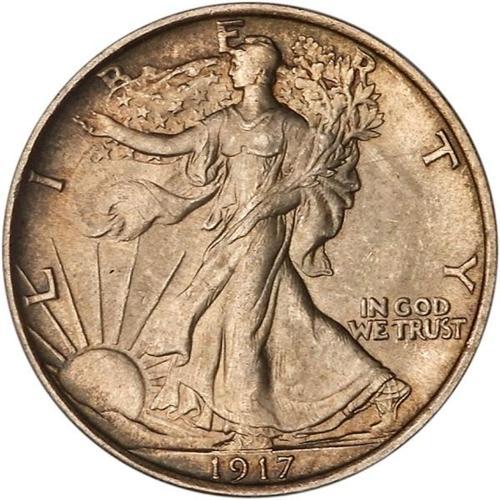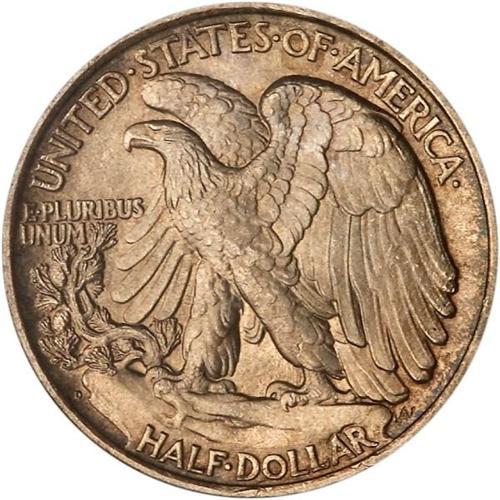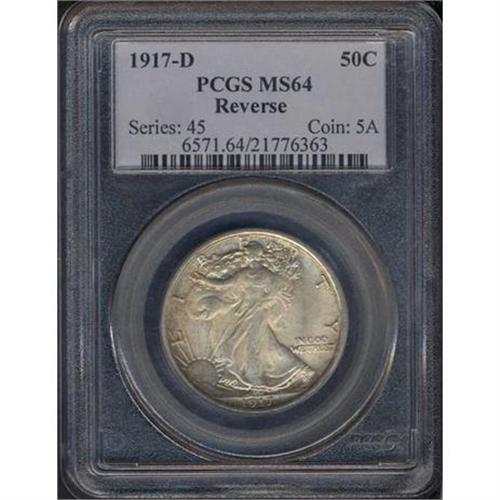 <b>1917-D Liberty Walking Half Dollar. Mint mark on reverse. PCGS graded MS64.</b> A choice toned beauty of a 1917 half dollar! The satiny surfaces are afire with bold volatile cartwheel luster underneath attractive, light to medium golden brown color. Well struck for the scarce D-mint date of this year, and easily matching or surpassing others in an even higher grade <b>(PCGS # 6571)</b>