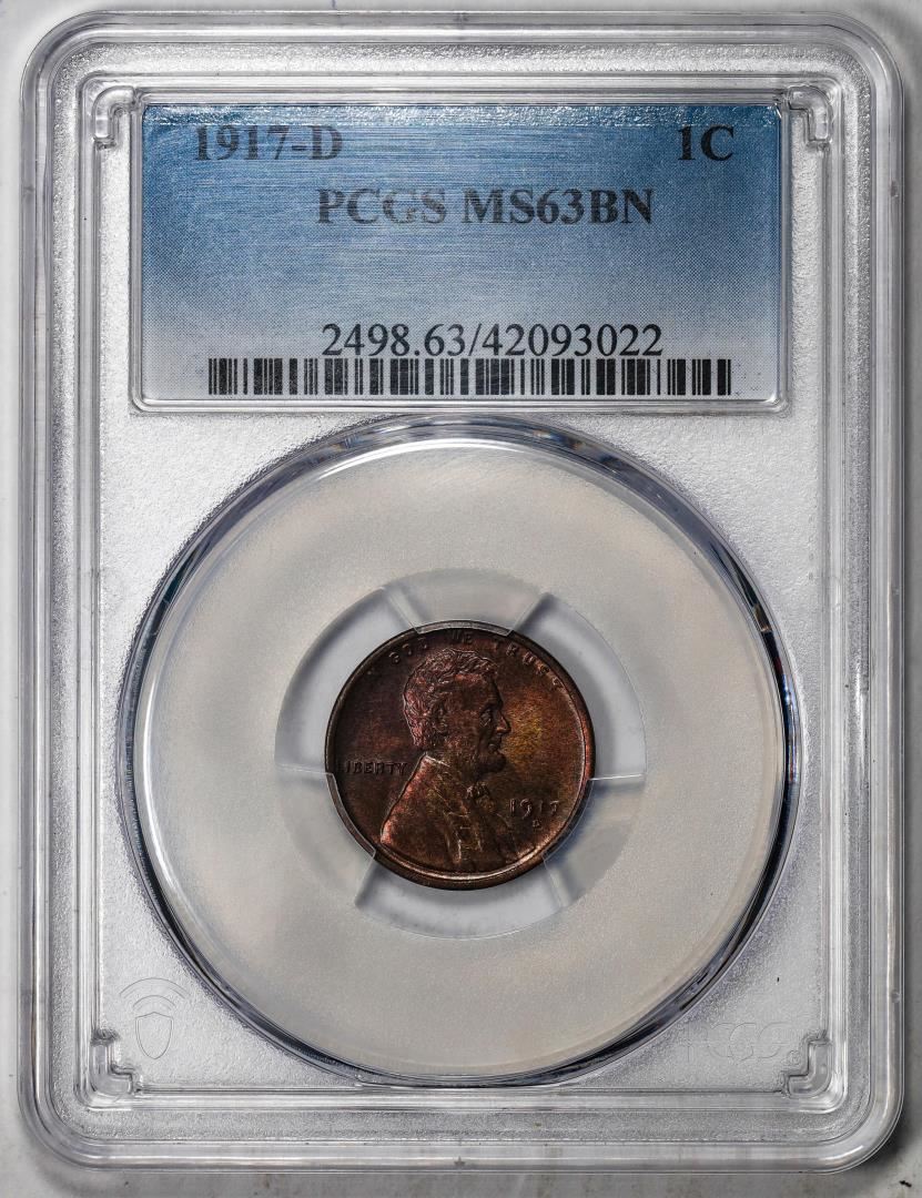 One 1917-D Lincoln Wheat Cent Coin PCGS MS63BN. PCGS Graded.