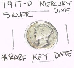 1917-D Mercury SILVER Dime RARE KEY DATE *PLEASE LOOK AT PICTURE TO DETERMINE GRADE*!! ***Coin & Currency Grades, Conditions and Values are not Northern Colorado Estate Liquidators Responsibilty. Grades, Condition and Values are determined by Consigner(s) & Buyers ONLY*