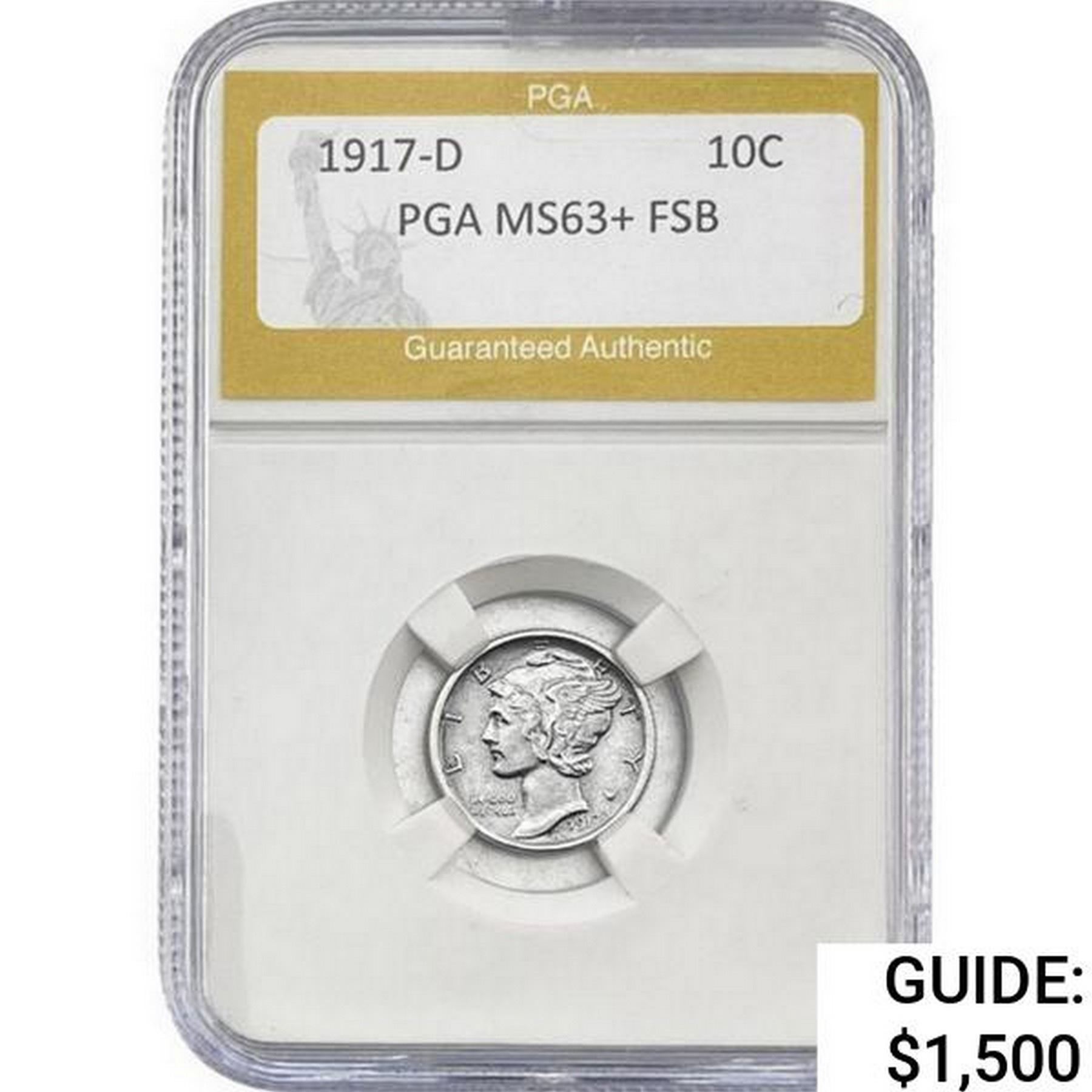 1917-D Mercury Silver Dime PGA MS63+ FSB