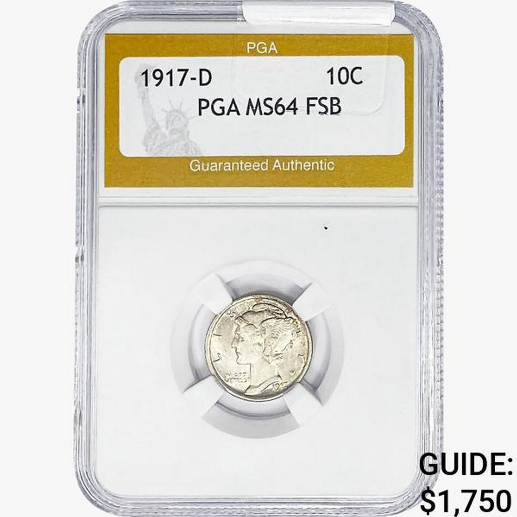 1917-D Mercury Silver Dime PGA MS64 FSB