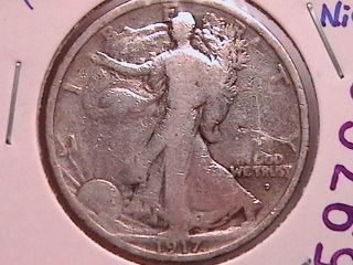 1917-D (O) Walking Half, The scarce obverse Mint Mark.