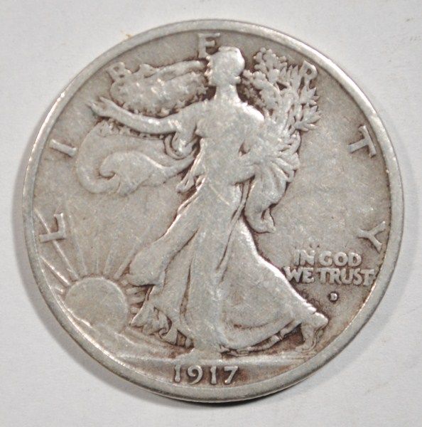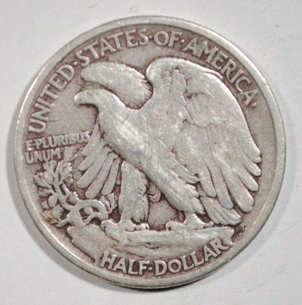 OBVERSE MINTMARK ON THIS DENVER MINTED WALKING LIBERTY HALF DOLLAR, EST. $60.00 TO $65.00