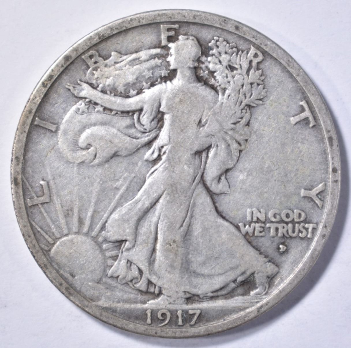 1917-D OBVERSE WALKING LBERTY HALF DOLLAR, VF