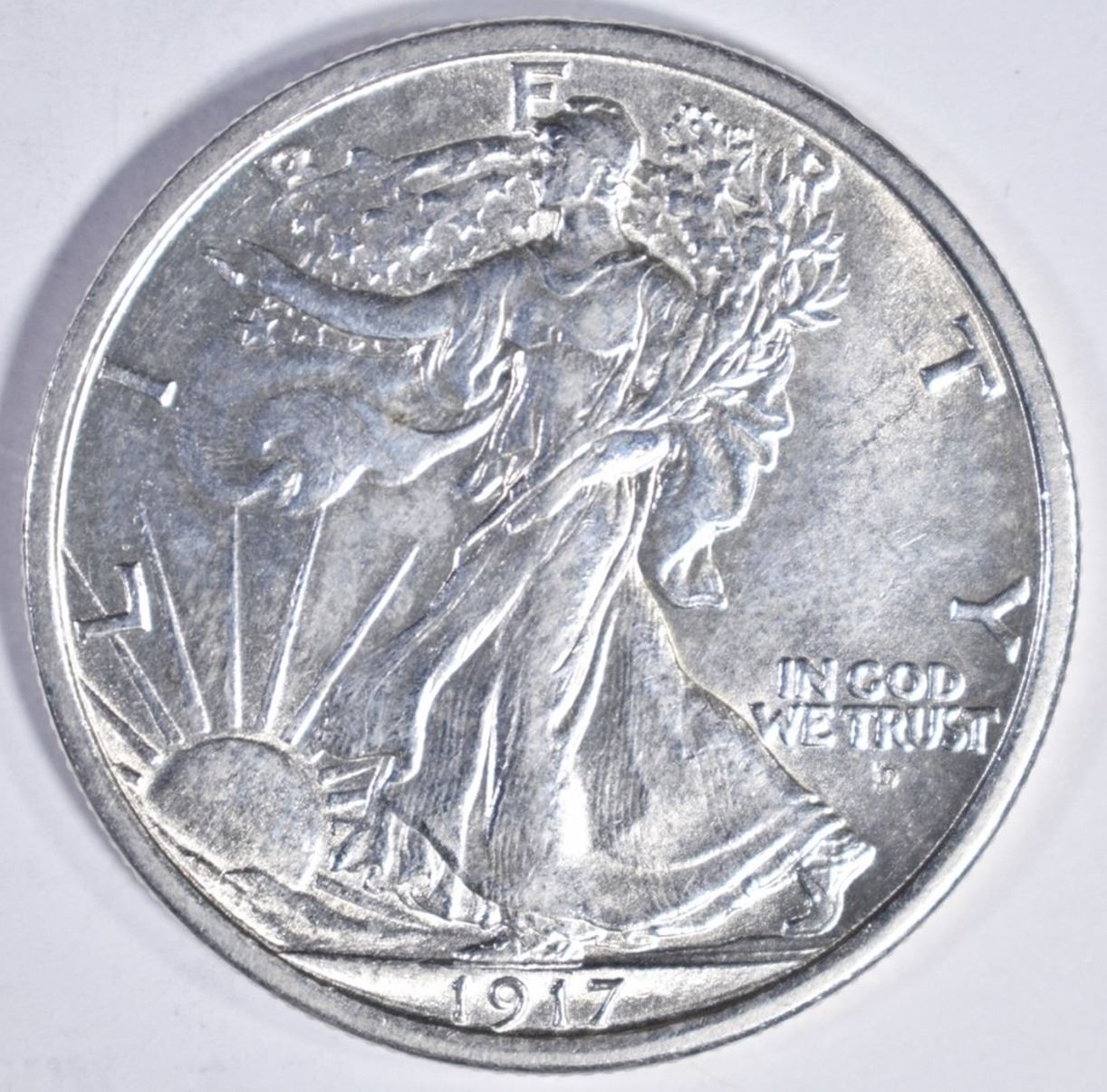 1917-D OBVERSE WALKING LIBERTY HALF DOLLAR, GEM BU