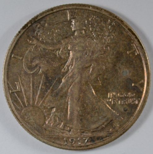 1917-D OBVERSE WALKING LIBERTY HALF DOLLAR MS62 ORIGINAL NICE GOLDEN TONE, RARE