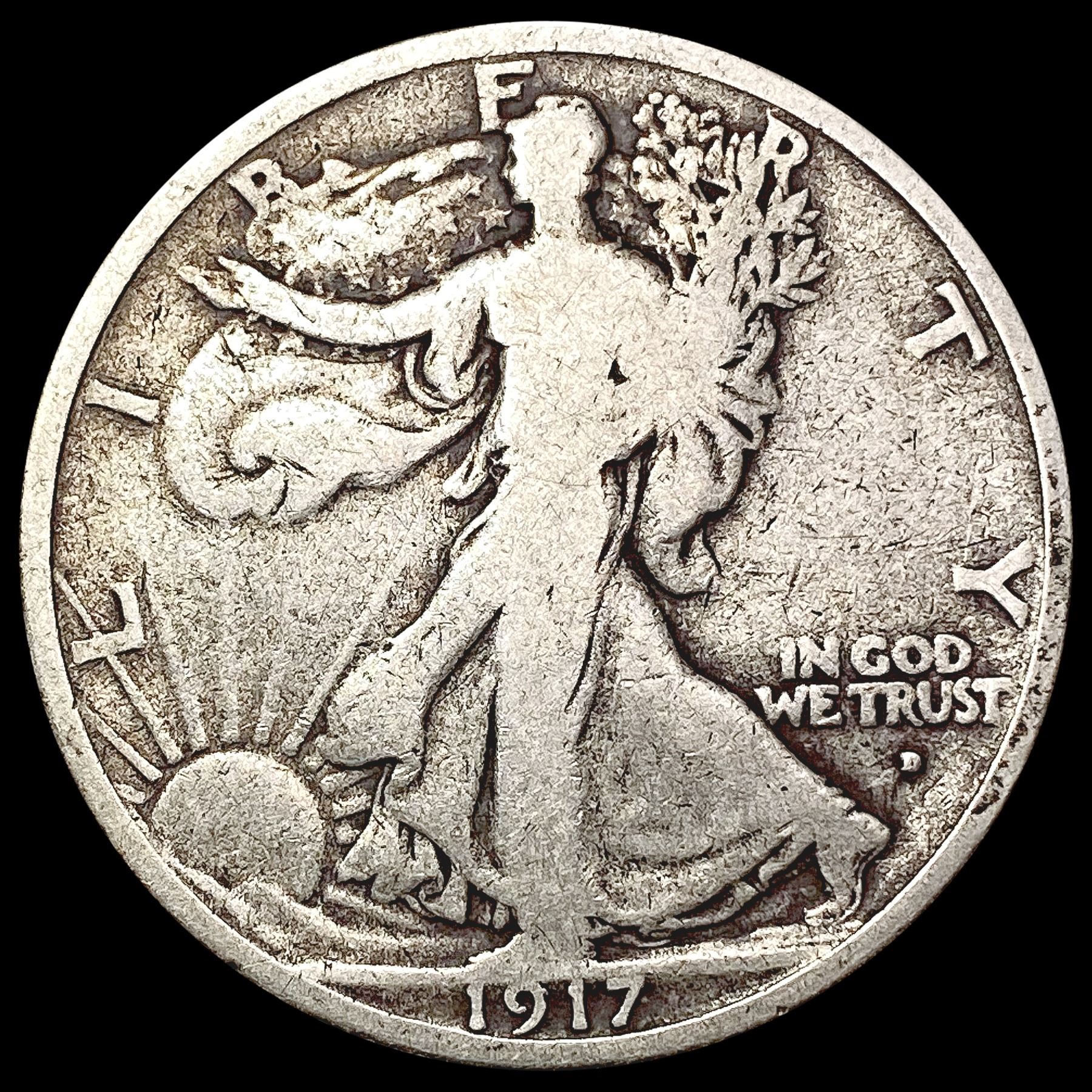 1917-D Obervse D Walking Liberty Half Dollar NICELY CIRCULATED