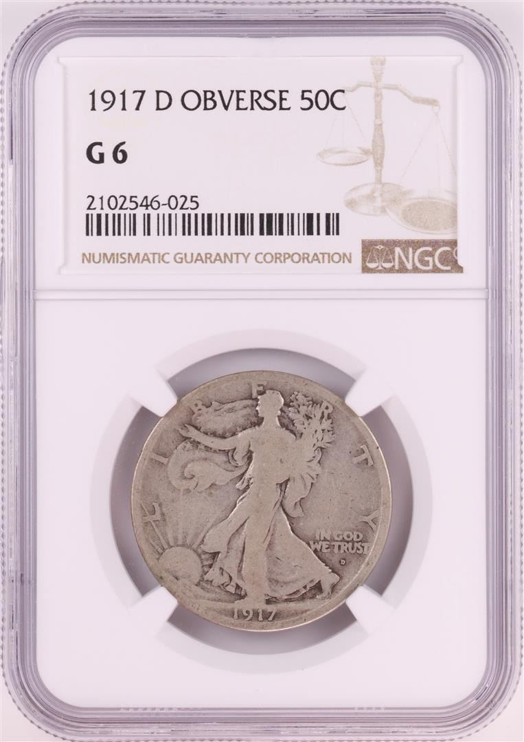 One 1917-D Obverse Walking Liberty Half Dollar Coin NGC G6. NGC Certified.