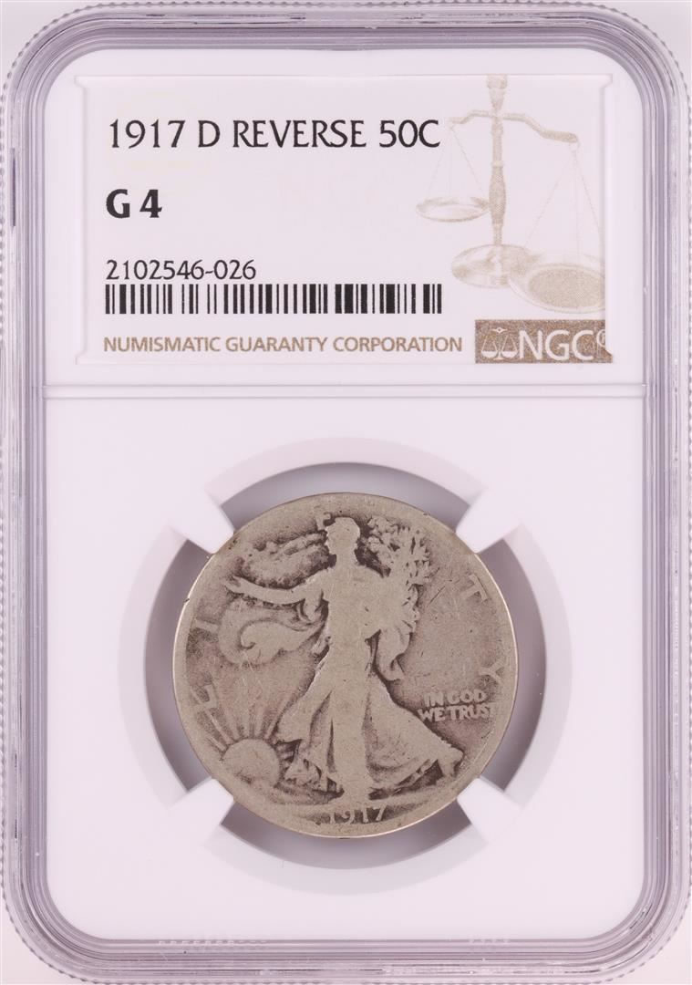 One 1917-D Reverse Walking Liberty Half Dollar Coin NGC G4. NGC Certified.