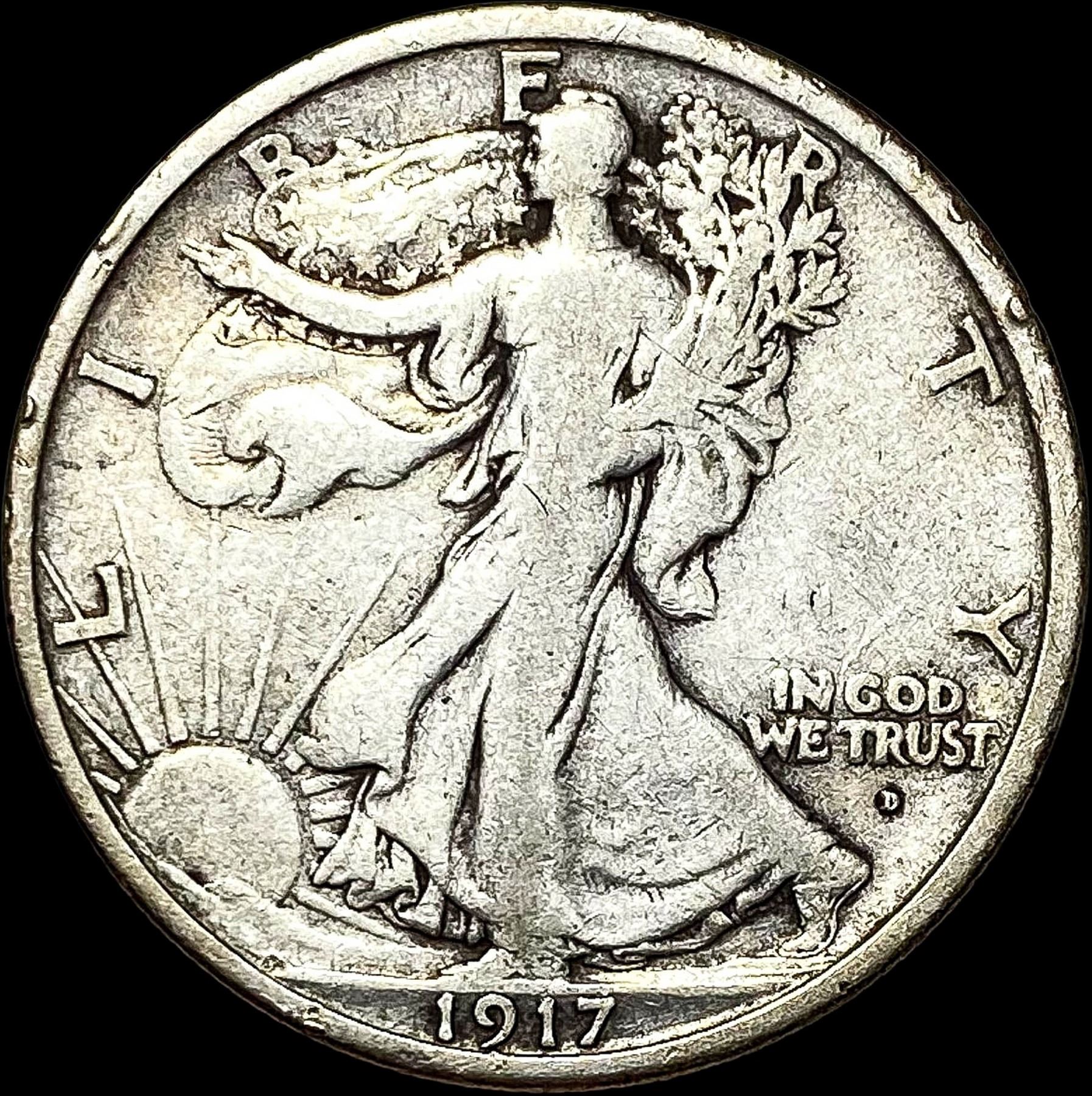 1917-D Silver Walking Liberty Half Dollar NICELY CIRCULATED