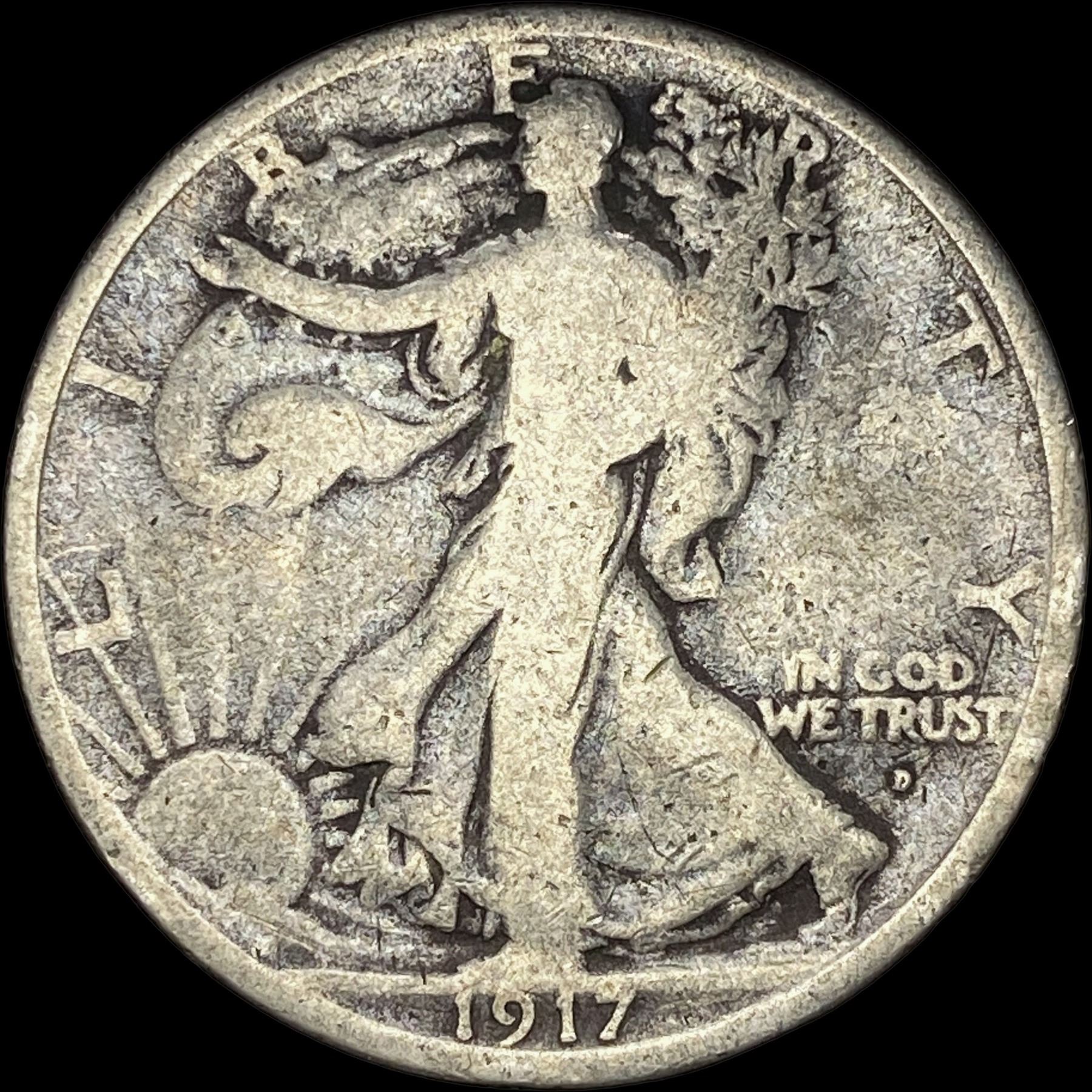 1917-D Silver Walking Liberty Half Dollar NICELY CIRCULATED