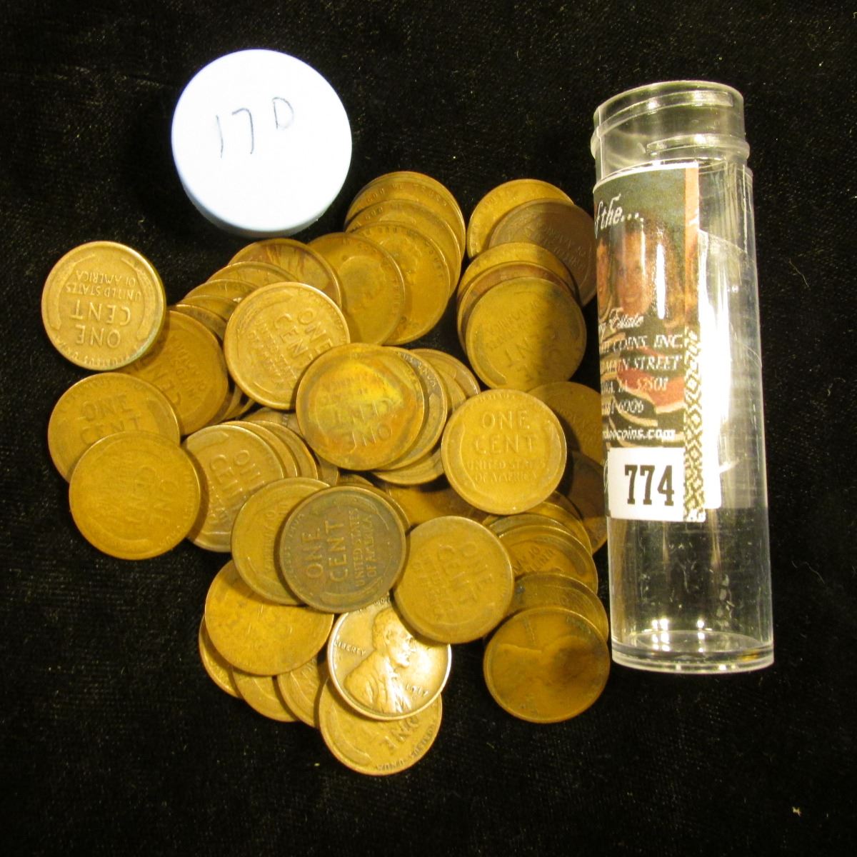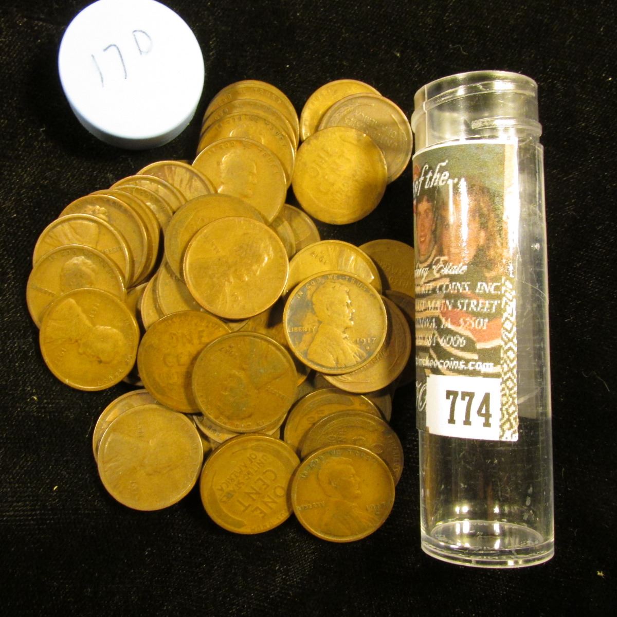 1917 D Solid-date Roll of Lincoln Cents (55 pcs.) Average circulated.