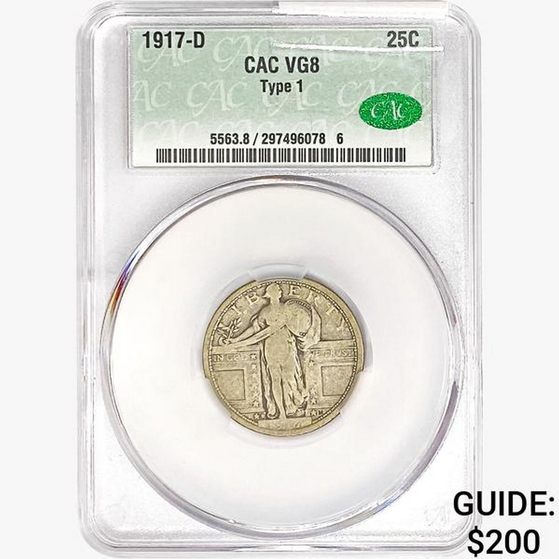 1917-D Standing Liberty Quarter CAC VG8 Type 1
