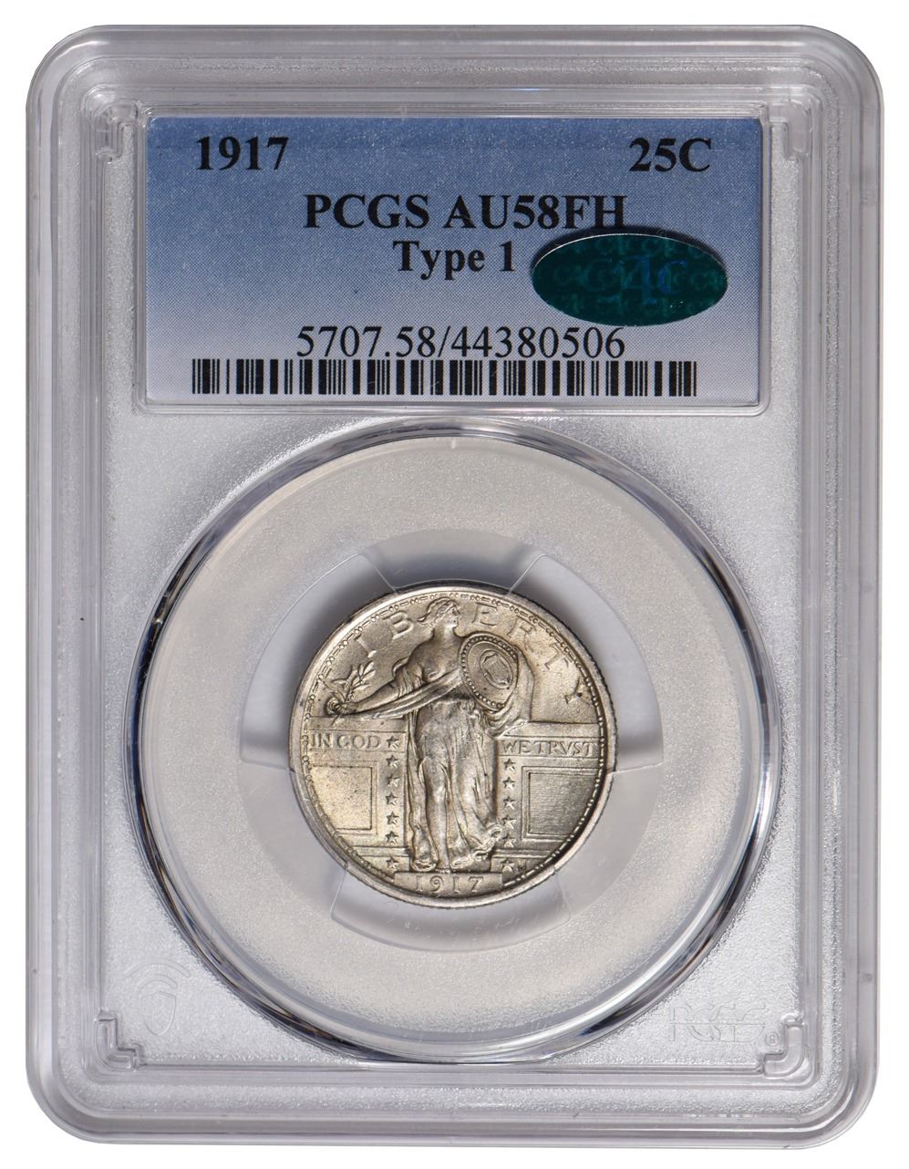 One 1917-D Standing Liberty Quarter PCGS AU58FH CAC.