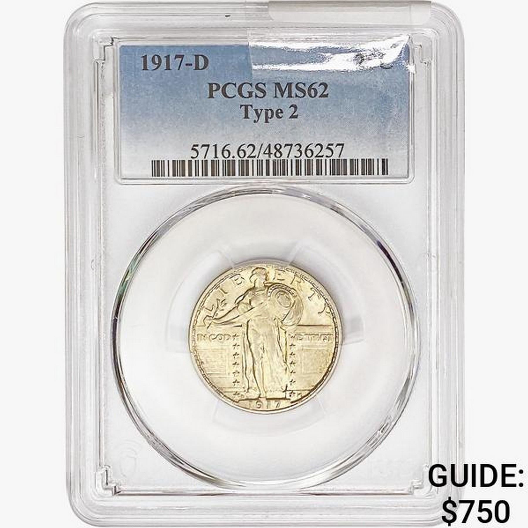 1917-D Standing Liberty Quarter PCGS MS62 Ty 2