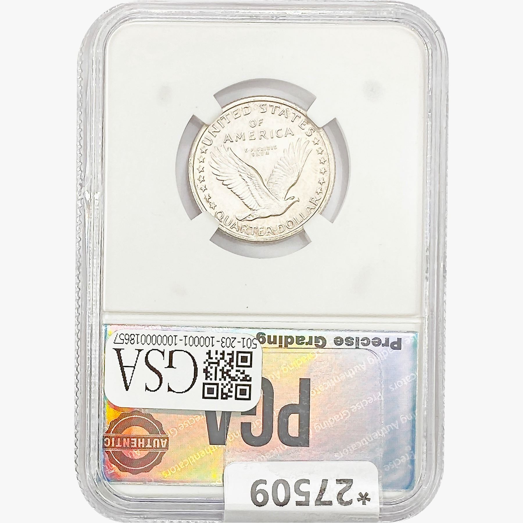 COINS AND CURRENCY LISTED IN GSA’S CATALOG AS GRADED AND ENCAPSULATED BY PCGS, NGC, ANACS, ICG, PCGS CURRENCY, PMG, PCGS BANKNOTE GRADING, CMC OR ANY OTHER THIRD-PARTY GRADING SERVICE ARE LIKEWISE SOLD “AS-IS” EXCEPT AS EXPRESSLY SET FORTH HEREIN. ALL THIRD-PARTY GRADING SERVICE GUARANTEES, INCLUDING AUTHENTICITY, ARE THE SOLE RESPONSIBILITY OF THE THIRD-PARTY GRADING SERVICE AND NOT WARRANTIES OR GUARANTEES OF GSA. BIDDERS SHOULD CONTACT THESE THIRD-PARTY GRADING SERVICES DIRECTLY WITH RESPECT TO ANY CLAIMS OR QUESTIONS THEY MAY HAVE CONCERNING THEIR GUARANTEES AND WARRANTIES. BIDDERS ACKNOWLEDGE AND AGREE THAT AUCTIONEER IS NOT BOUND BY OR LIABLE FOR ANY OPINION OR CERTIFICATION BY ANY THIRD-PARTY GRADING SERVICE. REMOVAL OF A PRODUCT FROM ITS PROTECTIVE CASING OR HOLDER OR ALTERATION OF ANY COIN HOLDER WAIVES ALL RIGHTS CONCERNING THE PRODUCT CONTAINED THEREIN.