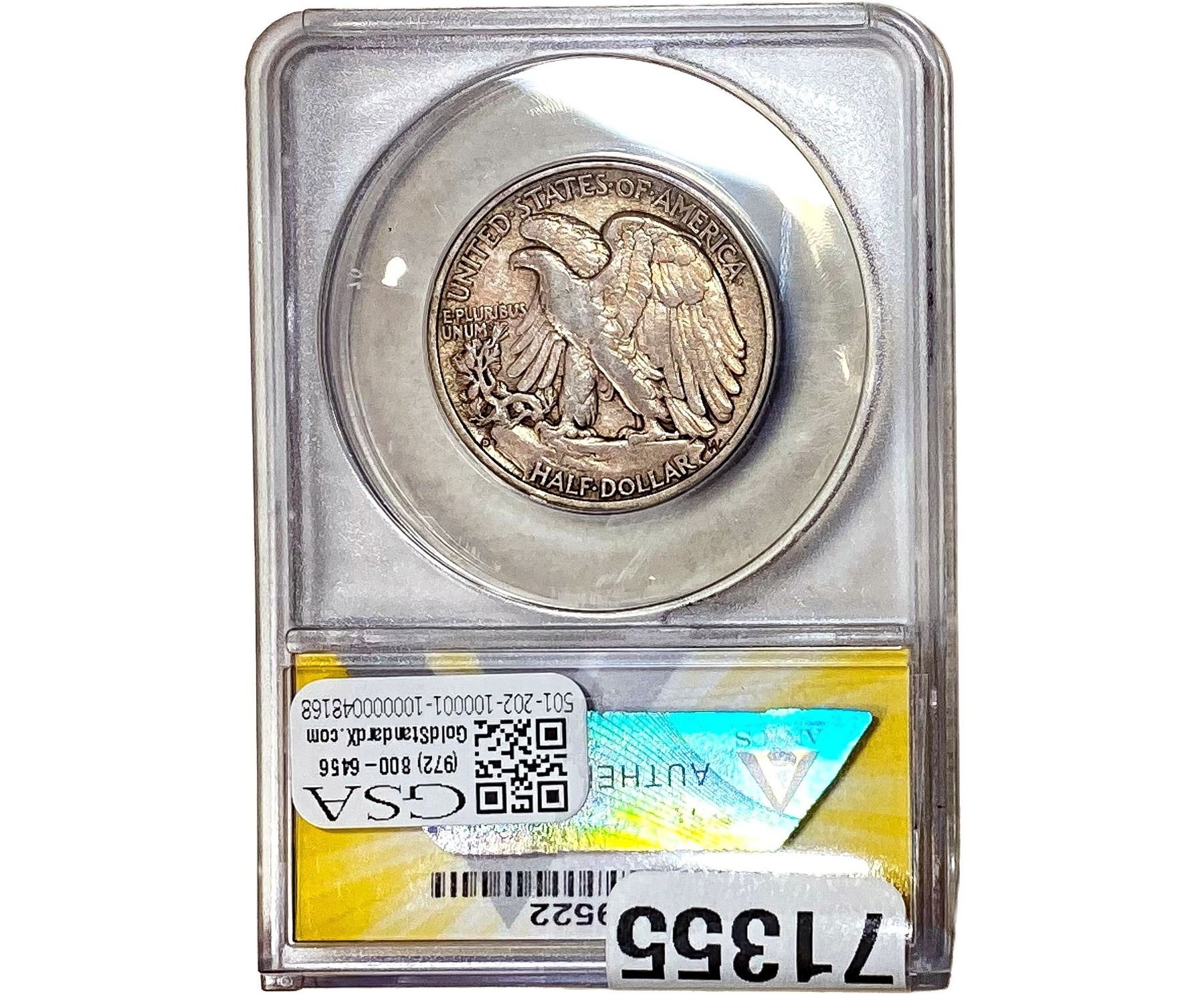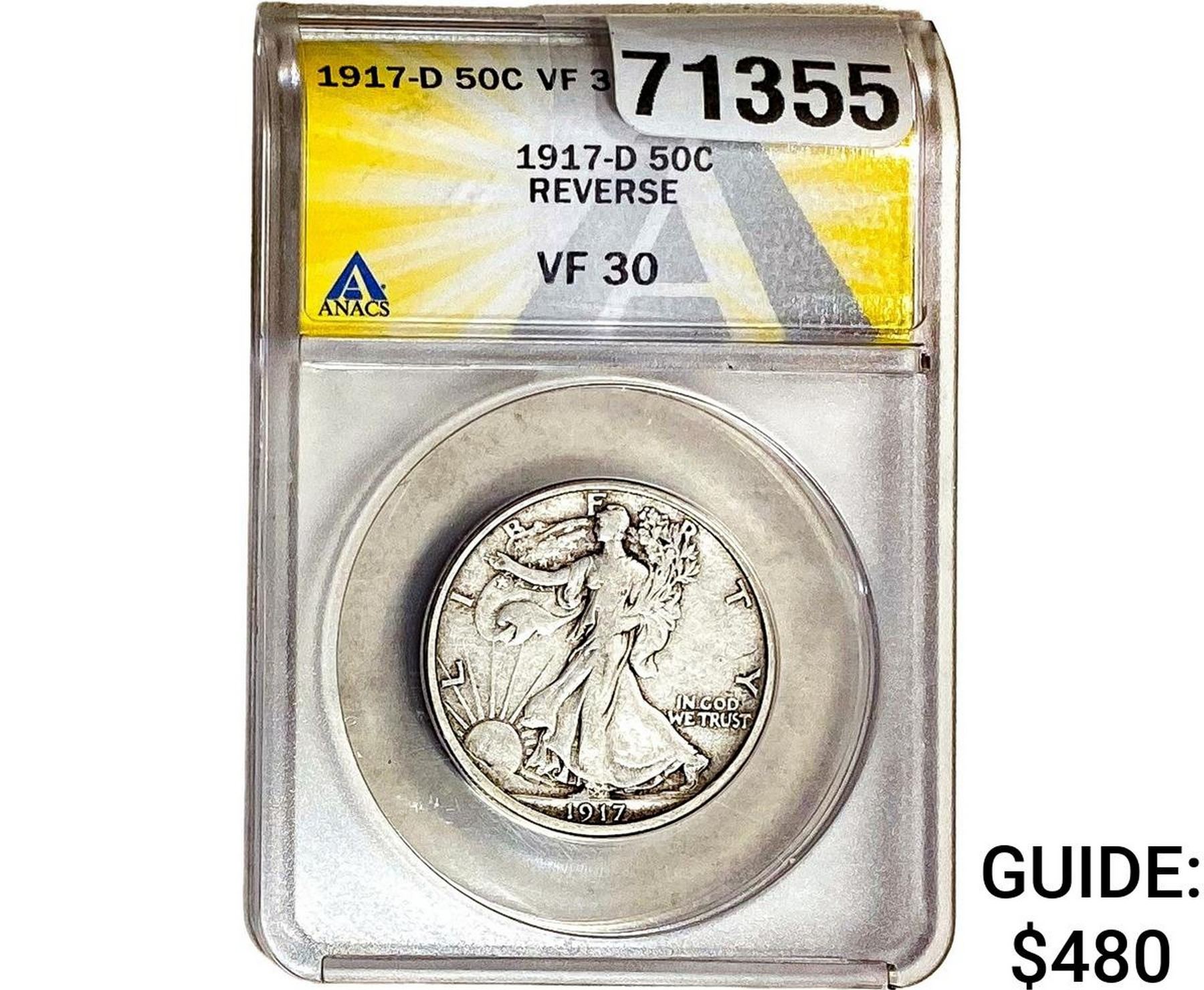 1917-D Walking Liberty Half Dollar ANACS VF30 Reverse